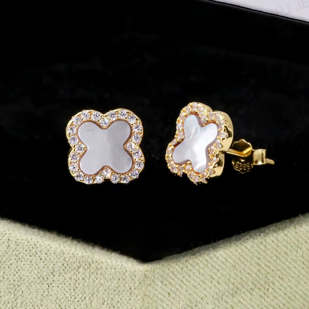 These beautiful earrings feature a soft white clover centerpiece framed with sparkling cubic zirconia, creating a bright and luxurious finish. Plated in 14K gold, they offer a warm, premium shine that stays stylish over time. Lightweight and comfortable, they are perfect for girls to wear every day or for special occasions — adding a touch of timeless elegance to any outfit.